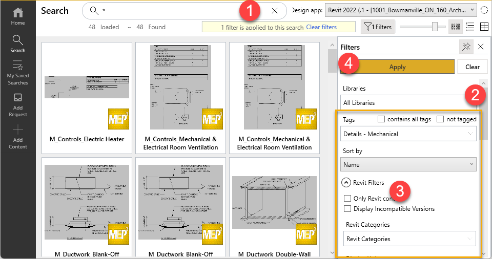 - Can be filtered to only search specific parameter values, company-wide, by BIM Managers