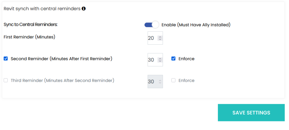 An accompanying feature of the Ally system can be enabled in the portal to facilitate more efficient central model sync and save for Revit.