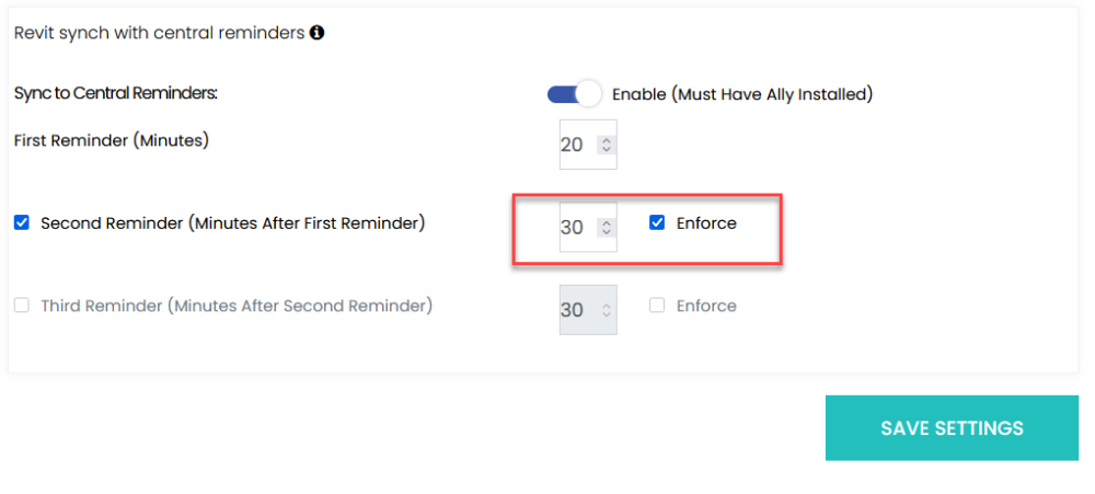 The number of reminders can be specified, up to three, before a user is forced to save. To enforce syncs on a reminder, check the “Enforce” box.