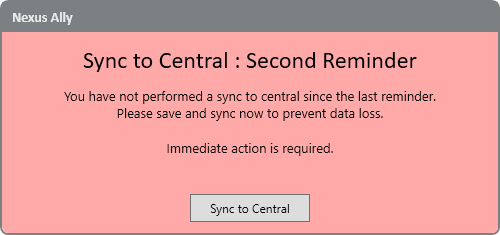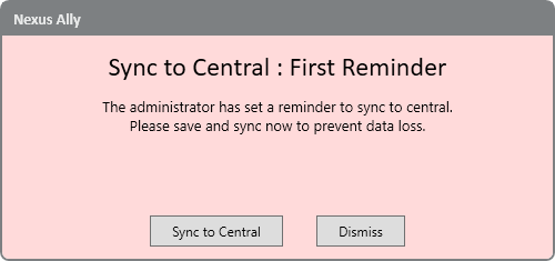 If the enforce option is checked, the user will only see the “Sync to Central” option and cannot dismiss the message until they do so.