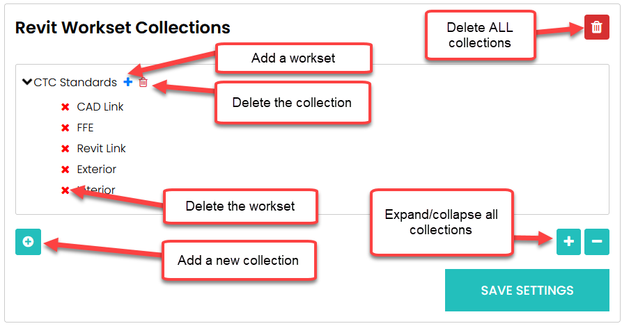 Workset Collections are lists of named worksets for use in other aspects of the Nexus system. It provides a singular place for maintaining standard workset to be applied to Revit models. For example, when placing a family in a model, it can be automatically associated to a predefined Revit workset.